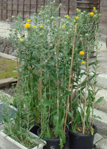 背丈の高い・奥、黒い鉢が、「最上紅花」