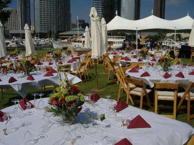 このブログのViewerに関係者の方も多いと思うので、パーティー会場のセッティングの写真を。白とワインレッド。シンプルさがいいですねー。