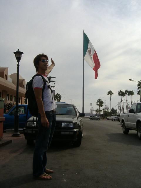 言葉を失うくらの海を一望する断崖絶壁の高速を一時間ほど行くとそこは港町Ensenada。Mexicoの陽気な雰囲気と巨大なメキシコ国旗が我々を迎えてくれた。しかし、メキシコの国旗はかっちょいいーー!