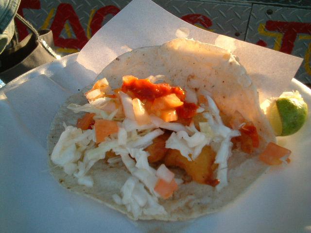 で、早速フィッシュ、カーネアサダ、シュリンプタコを購入。サルサソースとライムをジュ−ッとしぼってさっぱりピリ辛。シンプルかつフレッシュ!どれもメチャ旨だった。やはり地元のメキシコ人が集まるところは旨い!