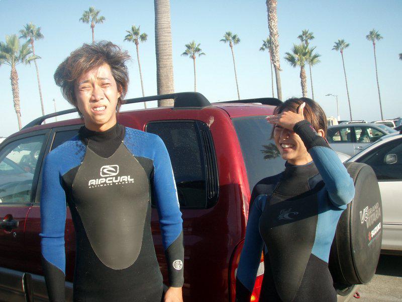 早朝サーフィン前の苦悶の表情。夜の生活が長かったからなのか、未だに朝早起きするのはつらいです。朝まで飲んだりマージャンしたりは余裕なのですが、早起きはちょっと…。そして、相変わらずすごい寝癖…。太陽がまぶしいです…(笑)。