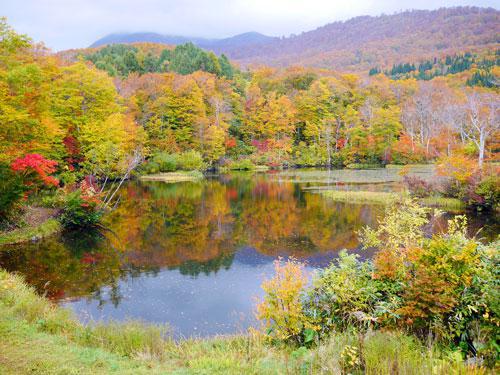 地蔵沼の見事な紅葉は一幅の絵のよう。