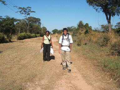 ザンビアの国境とジンバブウェの国境、まさにその境を作るラインに立った。