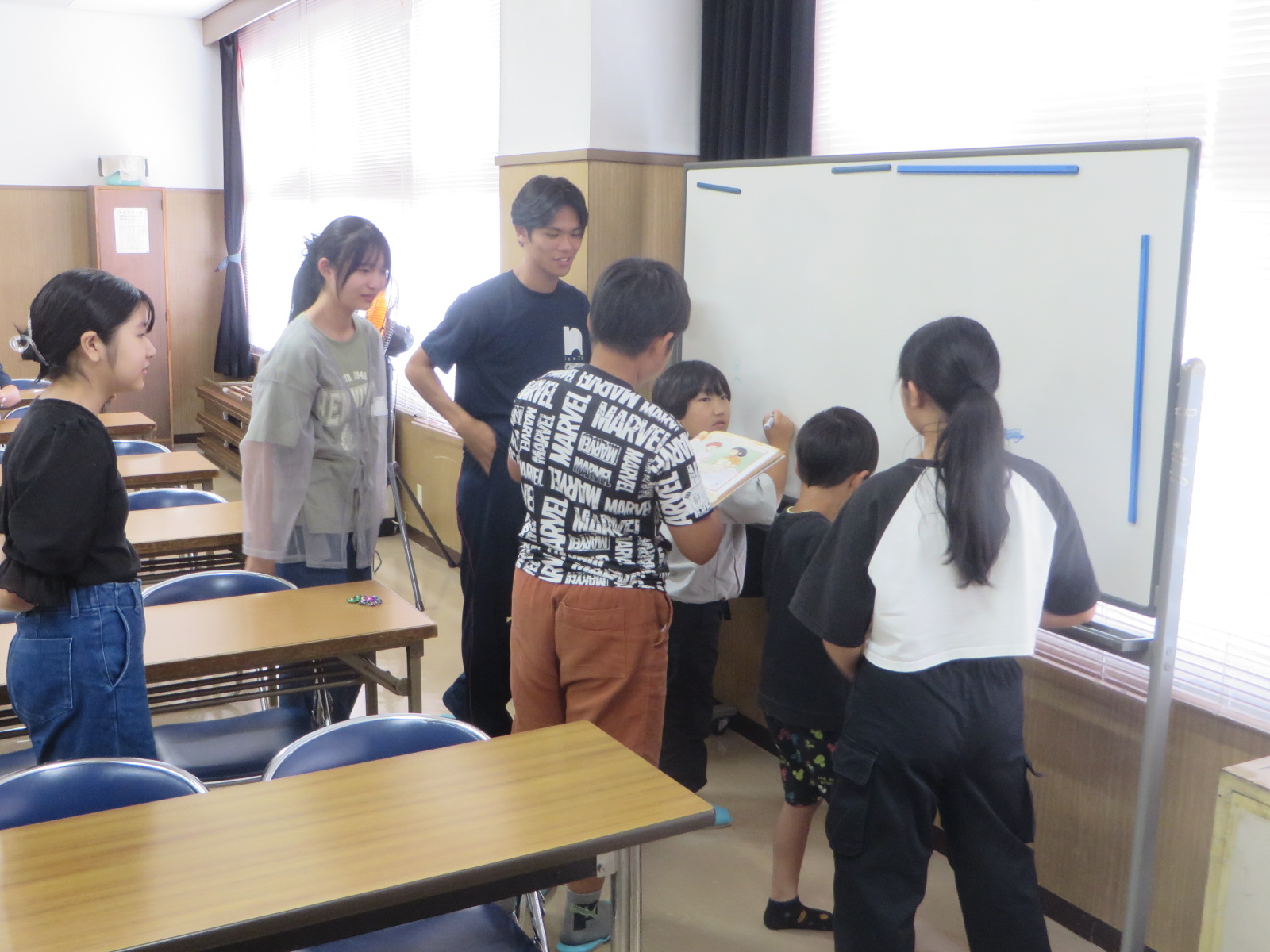 二日目は小学生15名に対して、6名のボランティア学生が対応しました。