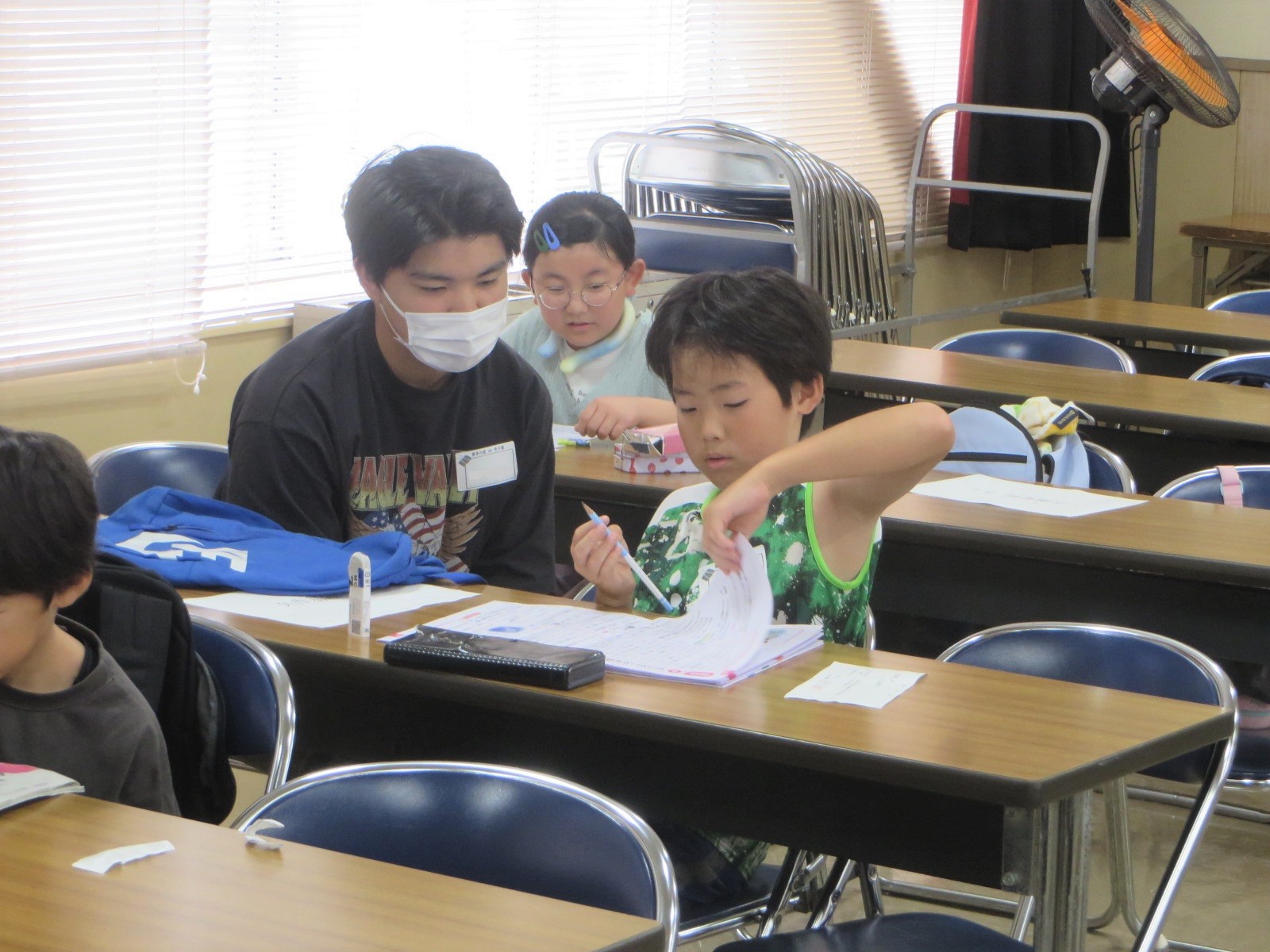 宿題タイムでは学生ボランティアが1対1~1対3の形でサポートし、分からないところを丁寧に教えました。アンケートでは「宿題ができた」「勉強がはかどった」といった声が多数寄せられ、児童の学習意欲向上につながったことがうかがえます。