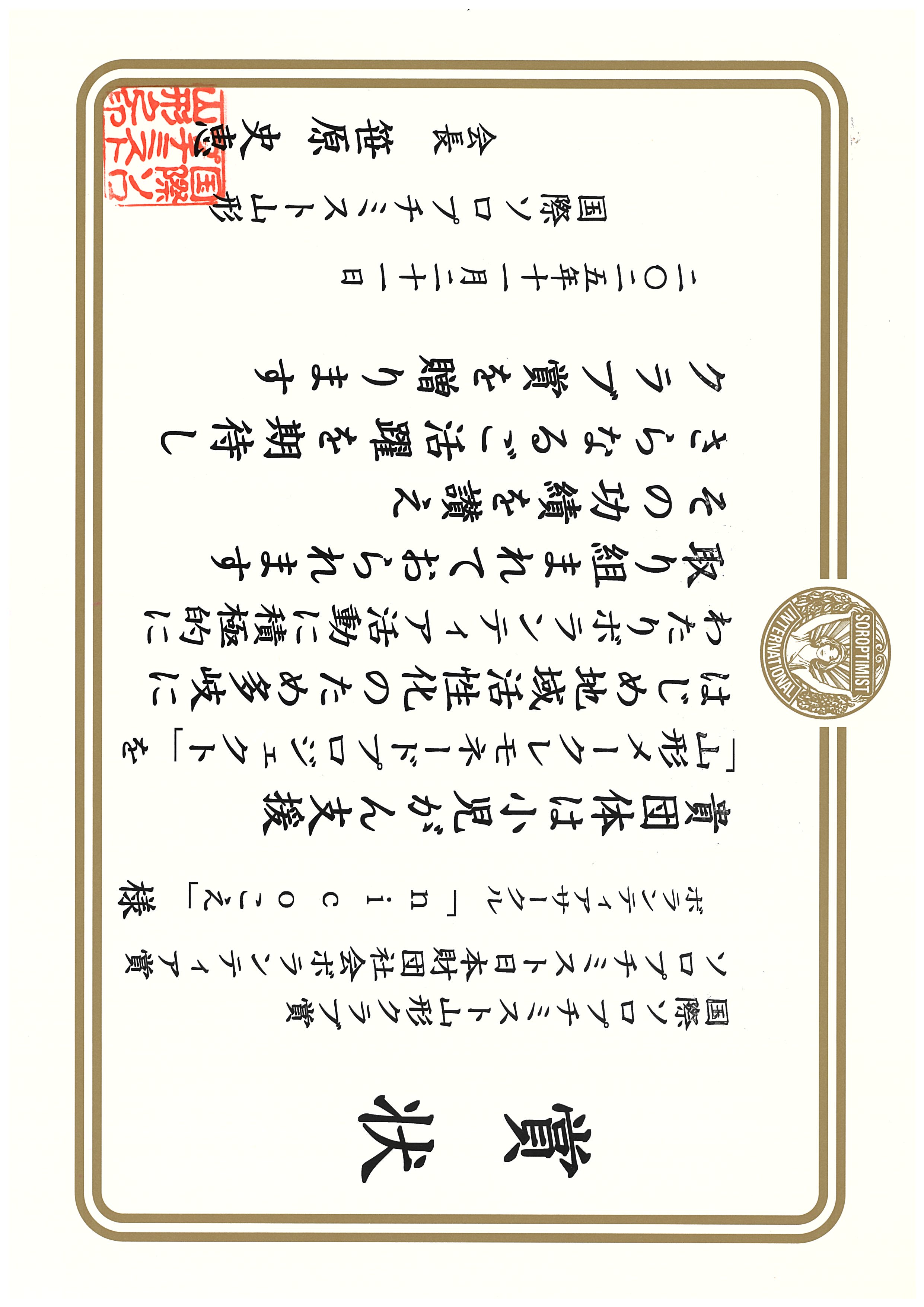 やったー!山形県青年の家コーディネートボランティアサークル「nicoこえ」が、令和7年11月21日(金)に国際ソロプチミスト山形様から「社会ボランティア賞」をいただきました。