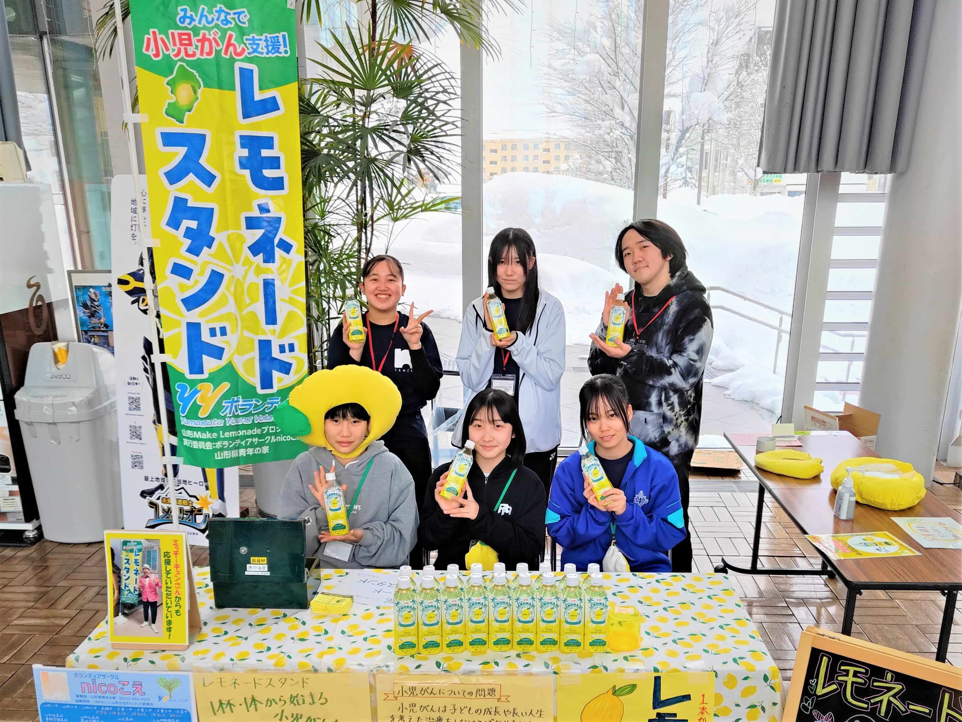 令和8年2月1日(日)、青年の家コーディネートボランティアサークル「 nicoこえ」 と、それをサポートする大人のチーム「nicoぷらAd」 が、最上広域交流センターゆめりあで開催された「最上地区ヤングボランティア交流会&YYボランティアフェスティバル」に出店し、通算44回目のレモネードスタンドを行いました!(第1回は2022年10月)