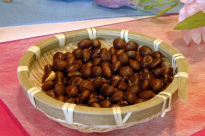 だだちゃ豆は乾燥すると、写真のように茶色い大豆となります。
