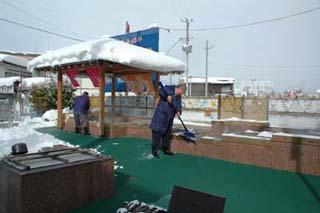 「足湯」の清掃は、各旅館が輪番で行います。(写真は清掃中のものです。)