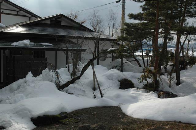 今年の豪雪で、松の枝も大分折れました。庭園灯も雪にやられ、折れ曲がっています。
