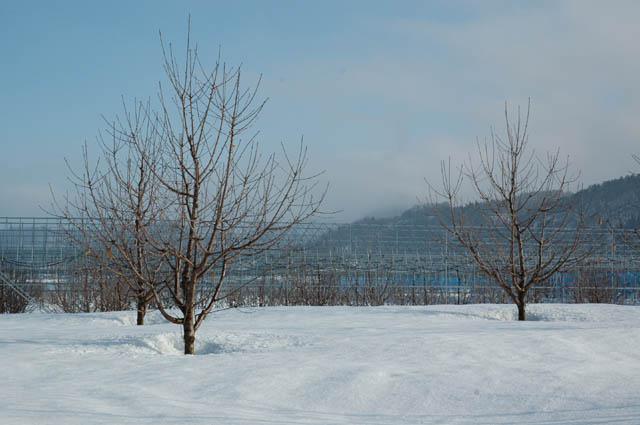 寒さも峠を越し、今朝は気持ち良く晴れ上がりました。さくらんぼの若木も陽を浴びて
