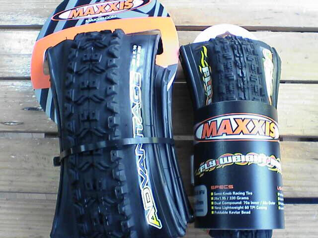 メーカー在庫切れの為、ご迷惑おかけしておりました人気の『ADVANTAGE』(写真左)再入荷致しました!!右はびっくり軽量の『FLYWEIGHT』26×1.95・330g!!