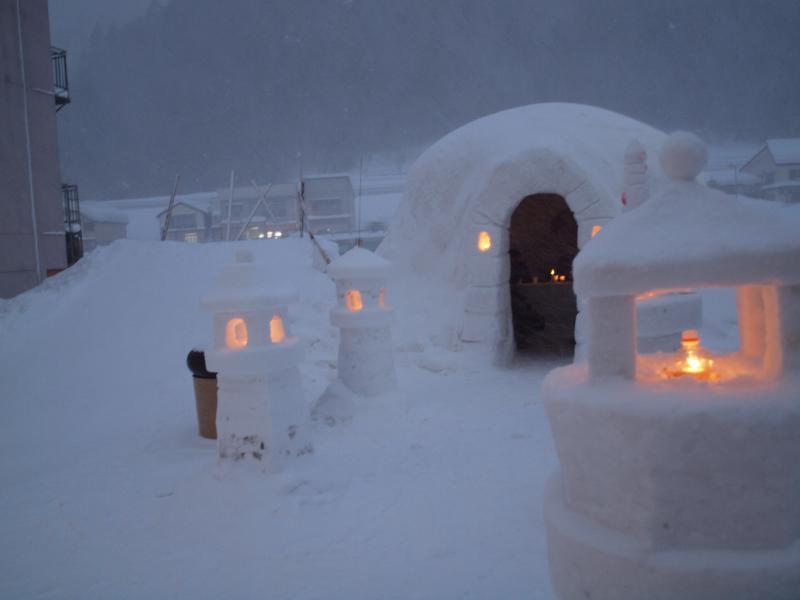 巨大かまくら 雪灯篭 すべり台