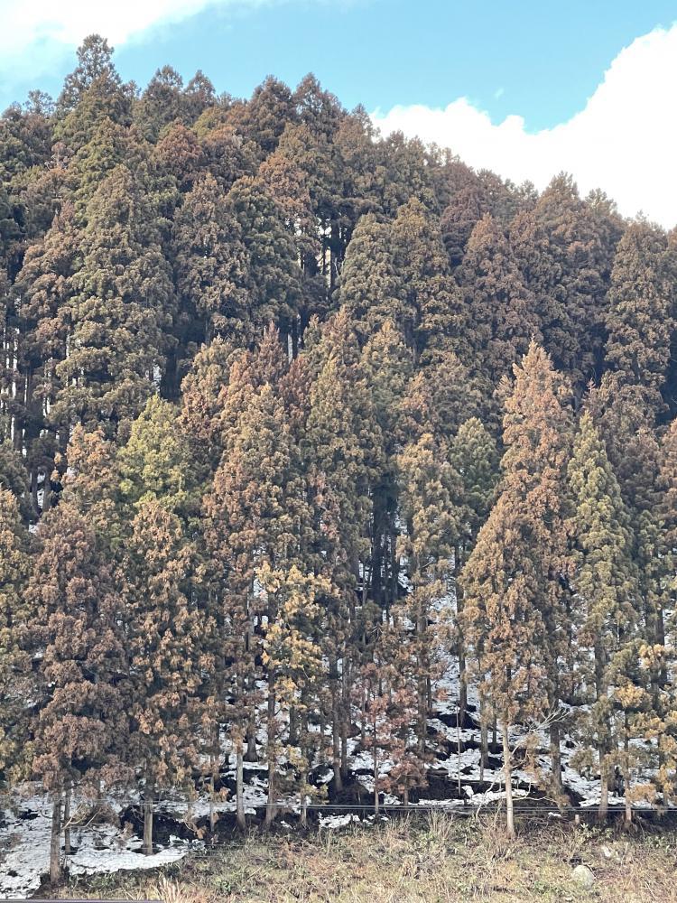 しかし、杉の木真っ赤です。