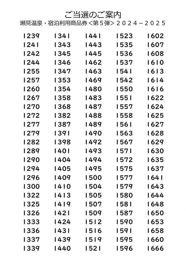 ▼お得な宿泊券 当選番号です。確認お願いします。
