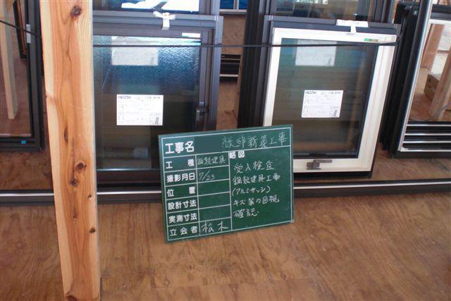 アルミサッシが現場に入りました、キズなどがないか検査(受入検査)です。