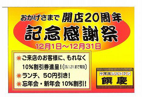 これまでのご愛顧に感謝して、「開店20周年記念感謝祭」を開催しております。