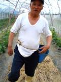 きゅうりの早もぎ作業中です。ちなみに農場長です。下着で頑張っています。