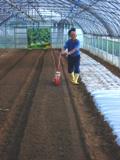 私と出荷部長はマルチ上に手植えしましたが、農場長はご覧の通り。