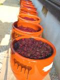 ずらり並んだ甕の中身は、一週間の夜干しを経て作り上げた「おばぁちゃんの梅干し」。食せるのは9月下旬頃です。