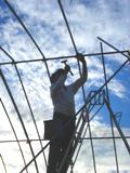 朝八時から開始したハウス建て、昼休みをはさんで午後5時半まで続きました。