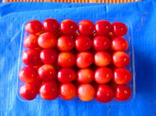 こちらは、黄金錦と佐藤錦の玉詰めセット。部長ががんばって玉詰めしています。肩が凝るそうです。ちなみに私はペーペーなので、玉詰めはさせてもらえません。(というか出来ません・・・)