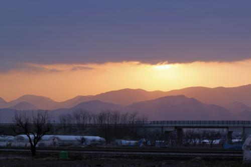 山形市内には、霞が低く静かにタナビイていた。