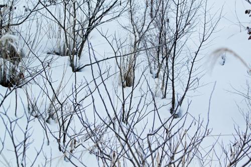 昼間9時間53分、夜間14時間07分、次の新月(2/3春分の日)まであと15日・・・。 (以上、casio G'z GEAR内 山形県データによる) ちなみに、次の新月に当る2/3春分の日は、2011年は旧歴の元旦となる様だ。 今朝も、いかにも積もりそうな雪が、音も無く淡々と降りしきっている。 木々も眠っている感じだし、動物たちも活性が低く、 せいぜい、犬っ子達の接近が、有刺鉄線の柵の下にじっと隠れていたキジを驚かせて、 慌てた様なゴトゴトという羽音を残して飛び出させてしまった程度だ。 キジには、なんだか気の毒な事をしてしまった感じだった。 日の出時刻を過ぎても、写真を撮れる様な明るさじゃないし、仮に撮ったとしても、 鉛色に近いダークなブルーグレーの光の膜・・・という感じなので、アキラメた。 大寒の前日という事で、この様なお天気なのだろうが、 だからこそ、春の訪れ(音擦れ)が待ち遠しかったり、光が目に染みたりと、 こんな「振り幅」が、脳みそを非言語的にちーゃんとマッサージしてくれるので、 ま、<東北の裏日本>っぽくって、良しとすべしである。 |