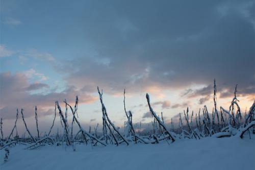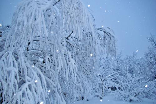 雪の小休止日だった昨日でさえ、山は輪カンジキ履いても膝まであったので、 こんな日は、とても歩けたものじゃない。それに家の周りの雪カキもしなきゃならん。 っという事で、犬っ子達との山散歩はオアズケとし、いつものコースを散歩する事にした。 ところが、いつもの散歩コースとは言え、この雪でどうも景色が違って見えるのだ。 その辺の雑木にも厚く着雪して、蔵王の樹氷とまでは行かないけど、 そんな雰囲気を醸し出す景色に一変していたからだ。 実は、昨晩の23時頃に雷が鳴って雨が降ったらしい。 らしい・・・、というのは、カミさんから教えられて初めて知った事だからだ。 (私はすでに眠っていて、全然知らなんだ;) 「正月、カミナリ、鎌要らず」 とか 「寒(カン)、カミナリ、鎌要らず」という言い伝えがある。 私の場合、田畑から切り離されてしまって既に4世代も経ってしまっているので、 近年になって知ったコトバなのだが、、こんな時期に、カミナリが鳴る年は不作となるので、 収穫のための鎌が要らない、という事の様だ。 ま、品種改良とか機械化、ハウス栽培などがあまり進んでいなかった昔のハナシだろうが、 当地の農業にとっては、今も昔もあまり好ましくはない様である。 ・・・・・・・・・・・・・・・・・・・ 散歩の後、朝食をとっていたら、携帯に電話が入り、 「今から山を見に行くから、一緒に来ないか?」との事。 こんな雪が降りしきる中での、急斜面での重く深い雪のラッセルを考えて一瞬迷ったが、 今日は単独行でもないし、全員が無線装備でもあるし、馴染みのメンバーでもあるし、 地形もそれなりに分かっている山でもあるので、了解した。 10時半頃に山裾にある駐車場に集合し、装備や服装を整えて、 ラッセルを交代しつつ山に分け入り、途中から散開して、 周囲の状況や現在地などを無線で連絡をとりながら、それぞれの担当箇所を見て回る。 雪は小康状態だがガスっており、杉林の中は比較的歩き易いのだが、雑木(柴))の急斜面の登りなどでは、輪カンジキを履いても今日は太ももまで雪に埋まったりする。 腰を超え出すと四つん這いでも直登はムリなので、ジグザグに進む。 なんてバカな事をやっているんだろう?・・・なーんて、思ったりもしないではないが、 こんなバカな事をやれる事が許されている人生の一時もあるんだぁ・・・、なーんて、 妙に感心してみたりしている自分がいたりもする。 登り下りで、計3時間の雪中行軍ではあったが、無事帰宅。 今日の一番の収穫は、心地よい疲労感と、悪条件の中での協働というものがもたらす 人同士の原初的な信頼感の増幅の様なもの(???)・・・かも知れない。 ...もっと詳しく |
