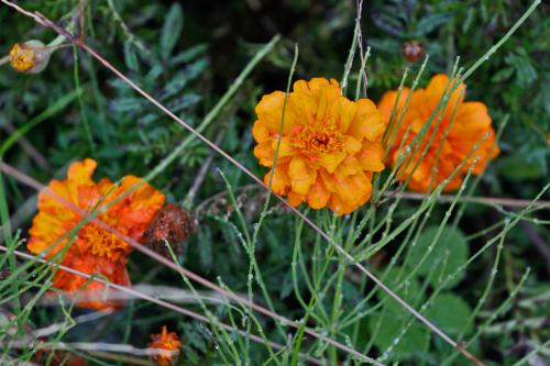 昨日(11/1)に、カモ猟が解禁となったので、 日の出時刻を過ぎた辺りから、猟をする音が遠くに散発的に聞こえる。 現代の猟場は、連日、60歳半過ぎ以降のリタイヤメント組が大勢を占めている。 ま、それも時代なんだろう。 マメを採るために畑でそのまま枯らされている大豆に目が行った。 今日の雨で濡れてしまっている。 でも、その包んでいる殻の色合いが、けっこう渋い。。。 おそらく、畑で或る程度枯らした後に、 今度は軒下に吊るして乾燥させて、殻を取り除くと、 その中から、あの白く艶やかな「大豆」が出てくる。。。 昔の<山の民>は、「煎り大豆」と「凍み餅」を時々かじりながら 栄養とカロリーを補給しつつ、冬の山を歩いたと聞く。 貧しいから・・・ではない。これは知恵なのだ。 山歩きの途中でいっぱしの食事をとると、満腹になってしまうと眠くなる。 冬の山で眠りコケてしまったら、命を落とす・・・という訳だ。 知り合いの年配の猟師は、煎り大豆・凍み餅代わりなのだろう、 やまがた名産「でん六豆」を時々かじりながら冬の山歩きをしていた。 そんな事を思い出しながらの、雨降りの、犬っ子達との朝散歩であった。 |