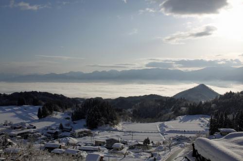 山形市の西部山稜:狐越街道からの奥羽山脈の眺望である。 村山盆地(山形市、天童市、東根市、村山市)は、雲海の下にあり、 手前は、街道沿いの中山間部集落である。 今朝の山形市内は、暗い雲に覆われて日差しは無かったのだが、 その暗い雲の中に幽かな蒼さが感じられたので、 もしかすると、雲の上は青々と晴れているのでは???と思い、 犬っ子達を車に乗せて、近くの山に行ってみる事にした。 案の定、高度を上げるに従って頭上はどんどん蒼く明るく開け来て、 振り返え見ると、山形市内は雲海の下となっていた。 確かに・・・今日はあれから1ヶ年の311である。。。 犬っ子達との山駆け散歩、しかもお天気に恵まれて・・・・な〜んて、 いかにも自分が脳天気な日和見で、申し訳なく、心苦しく、 気が引けてしまうのだが、だからと言って今日の今々何が出来る訳でもナシ。 奥羽山脈の向こうを想い、心の中で掌を合わせるのみである。 いずれにしても、生きてる人が次代をつくって行くしかない訳だし、 この世とか、人・・・って、どう考えてもやっぱ不完全・無常・不条理・・・的な訳だし、 だから、山とか自然とつき合う時みたいに、畏れとか、掌を合わせるみたいな、 そんな感じのココロムキを忘れない様にさえすれば、 ヒトが持つ傲慢さみたいなものに呑まれさえしなきゃ、 山や自然を楽しむ様に、何も構えることなく日常を楽しみ、 そして元気に次代づくりして行けば良いのではなかろうか? そ〜んな、ワケワカラン事を思いつつこの眺望を後にして、早々に山懐に入る。 ![]() ここの山懐は標高は600mそこそこなのに、雪がたっぷりである。 雪がたっぷりあると、犬っ子達がさんざん遊びまくっても、泥んこにならないし、 ダニなども付かないので、帰宅してからのシャンプーなどが非常に楽なのである。 さてさて、↓↓↓さっそく中型野生動物(多分・・・タヌキ)の匂いに反応。 ![]() ↓↓↓ケンタ(兄6歳)は大型野生動物(カモシカ)の跡の、その逃げた方向を見定めてるし。 ![]() ↓↓↓モッチ(妹:もうすぐ4歳)は、お腹が空いたのか?ちょっと早めの休憩に入る。 ![]() ↓↓↓ぼちぼち、山駆け散歩も一区切りついて、ちょっと気が抜けているケンタの図。 ![]() この後、西の方角から雪雲が湧いてきて周囲が真っ暗に。 今日はちょっと不安定な空なので、無理せず早めに切り上げて帰宅した。 |