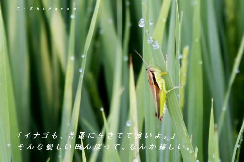 ま、連日、暑い×暑いでは、 只でさえさほど面白くもないBlogが、 なおさらに・・・である(反省;) っという事で、「忙中閑有り」ならぬ「夏中秋有り」で、 朝露でまだ飛べないで固まっている「イナゴ」を見つけた。 さて、冬を越すために今年は「イナゴ獲り」でもやろうかなァ? でも、無線ヘリでの高濃度農薬散布や、除草剤散布の中で たくましく生き抜いてきた「イナゴ」なのだろうから、 もったいない(?)ので、この近辺では止めておこう。。。 ちなみに「イナゴ(の佃煮)」は、 <やまがたの伝統食>のひとつなのだ。 ・・・・・葛の花がたくさん咲いている。 ごく僅かに刺激的な香りを含んでいるので、意外に清涼感もある。 あの「吉野葛」と同じ様に、その昔は「葛粉」を採ったと聞くが、 私には無縁らしく、現物を見た事も味わった事もない。 原野などにマダマダけっこう蔓延っているが、もう、誰も見向きもしない。 せいぜい、キジ(特に雄)が葛の葉っぱの影で避暑を決め込んでいるくらいだ。 その辺の「キジ」でさえ、避暑してるのに、 この暑い中、熱中症の危機スレスレで働いている人間全員に、 今夜は冷やしたビールかミネラルウオーターで乾杯したい気分である。 |