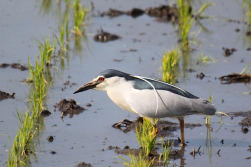 真っ青な頭上に「カルガモ」が勢い良く突っ込んでくる。 遠くからスピードに乗って大きく旋回しながらの降下で、 まだ足をたたんでいるんで、けっこうな速度だ。 さくらんぼを狙ってだろうか?(時期的には早いかな?) 食害を及ぼすという意味での嫌われ者「ムクドリ」も飛び出した。 (追いかけ切れなくて、ちょっとピンボケ;) ところで、スピーディな飛翔の後に、なんともスローな話に「すっ飛んで」恐縮だが、 実は・・・「タニシ(田螺)」も非常に気になっている。 どこの田にも同じように居るかというと、そうでもない様だ。 生息している田と、全く見かけない田がある。何故なんだろう? それに「田螺長者」という昔話もある様に、 人(の生活)とけっこう密接な存在だったハズなのに、 今はほとんど振り向きもされない。 比較食文化的に・・・だが、 「米の飯」が「パン」なら、「味噌」は「チーズ」だ。 その観点からすると、幼い頃に食べた(・・・られた;)「田螺の味噌炒め」は、 ブルゴーニュ名物「エスカルゴのパイ包み」であろう。(短絡過ぎかな?) それなら、地酒とも合うハズだ。 ともあれ、「タニシ(田螺)」は、どうも気になる存在なのだ。 |