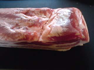 先ずはお肉を準備する。フレッシュな豚のバラ肉や肩ロース:好みにも拠るが、脂身が適度にないと味がのらない。冷凍肉は不可。今回は、フレッシュな庄内豚のバラが安かったので、3kgを購入。(スーパーでの購入時間:レジ待ち含む8分)