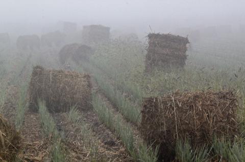 今朝は、濃霧に包まれた稲刈り後の田があった。