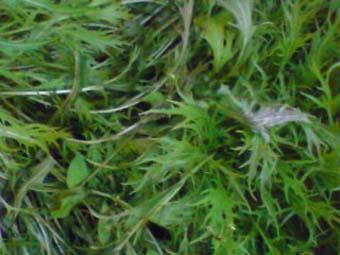 初初しいシャキシャキの「みずな」を畑で見つけた。