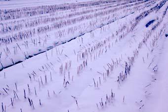▼粉雪に覆われて:刈り取り後の「そば畑」