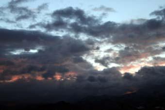 ▼蔵王山系北側稜線上空の雲に、赤い光が。