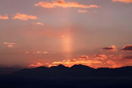 非常に稀な大気光象で、Wikipediaに拠ると、宮沢賢治の童話「銀河鉄道の夜」に登場する「天気輪の柱」のモデルになったという説もある、との事。ま、長生きはしてみるもんだ。(笑)