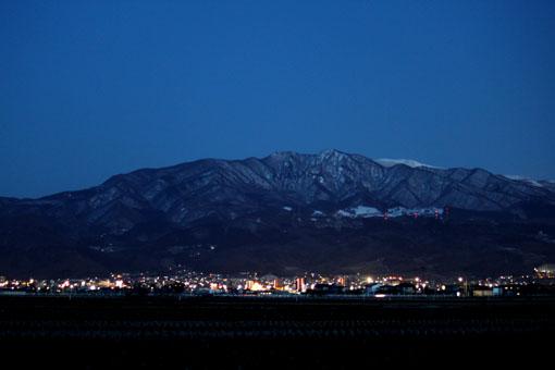 ▼タソガレドキの山形市、蔵王山系に抱かれて。