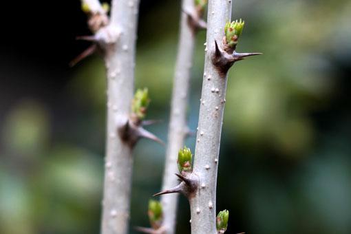 今年も、裏庭の「ウコギ」ちゃん♪の、新芽が出始めた。