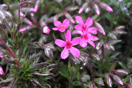 ▼冷たい雨にも、シバザクラ。