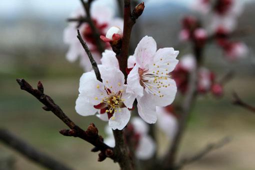 犬っ子散歩コース内では、梅に混じって、桜がやっと咲き始めた。