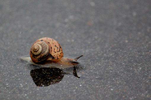 雨に誘われて、「カタツムリ」もそろそろお出まし。