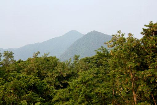 山形市西部:富神山とその奥に鷹取山が青く霞みながら見えた。