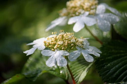 ▼朝露を飾った「ガクアジサイ」が綺麗だった。