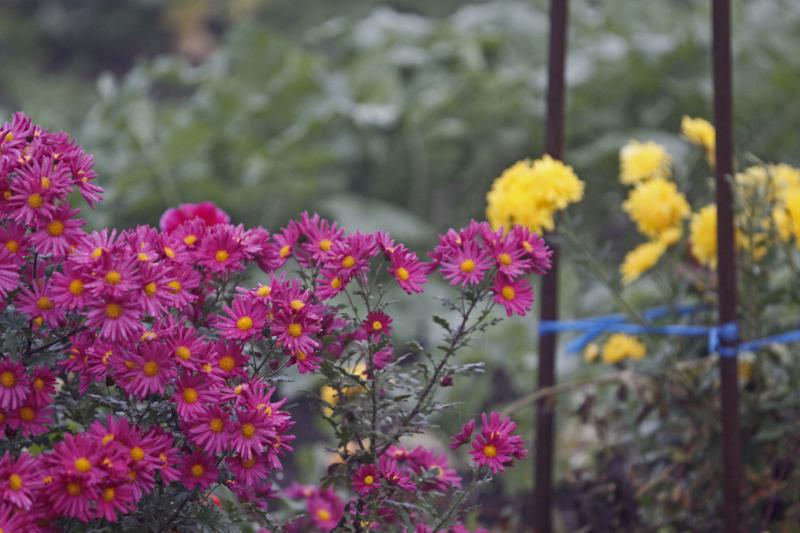 今朝は、キクの紫色に目が行った。