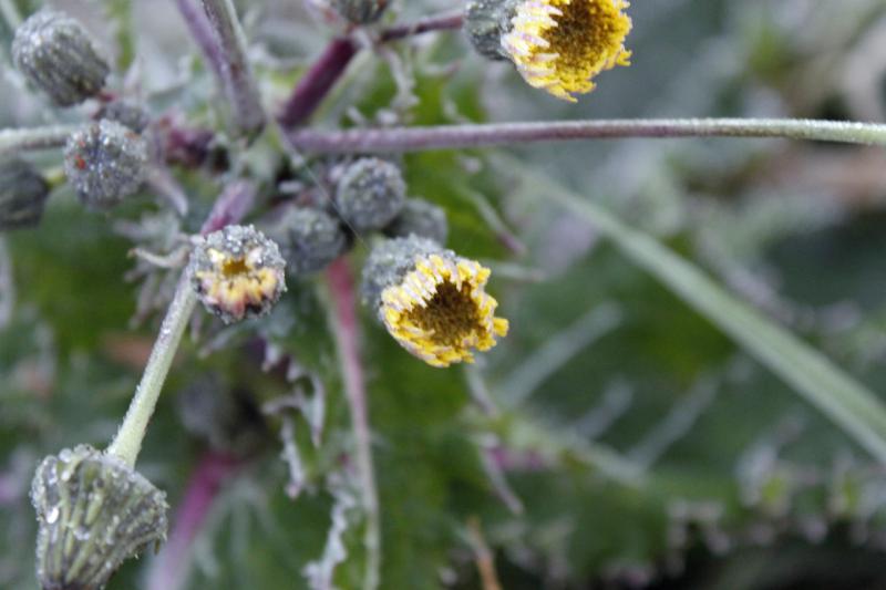 名残り花に、朝霜が少し降りていたけど、上空は青空だし、