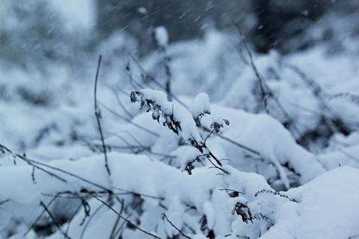 耕作放棄され、荒れた藪も雪でつぶれはじめている。