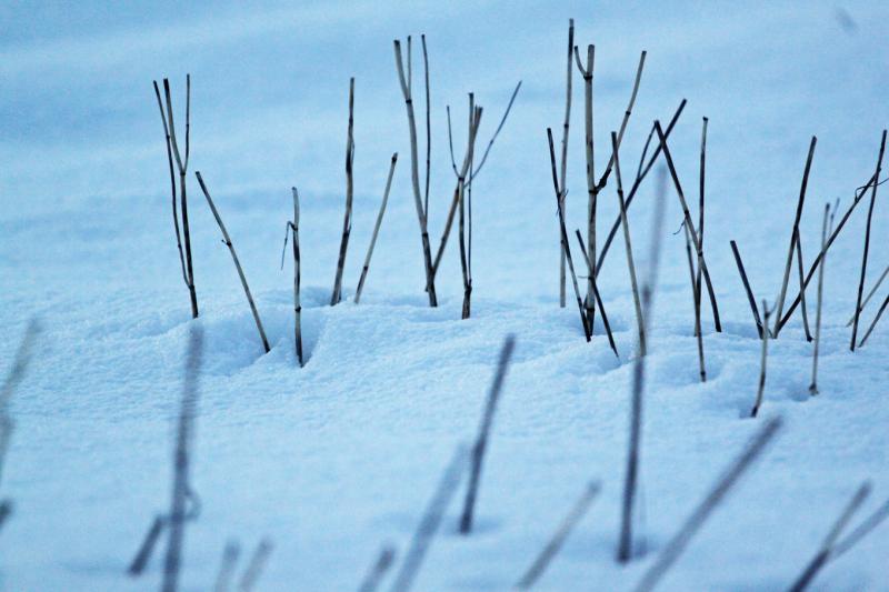 大方が雪で覆われている田の一部の土が出ているところで、夜間に餌を啄んでいるのだろう。